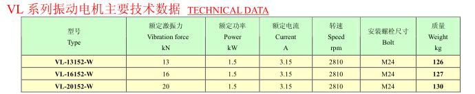 VL系列振動電機,功率1.0~2.2KW,2、4極,激振力為13~35KN,共計10個規格。本系列振動電機主要適用于有色金屬礦等行業,與高頻 VL系列振動電機篩配套,替代進口的同類振動電機。